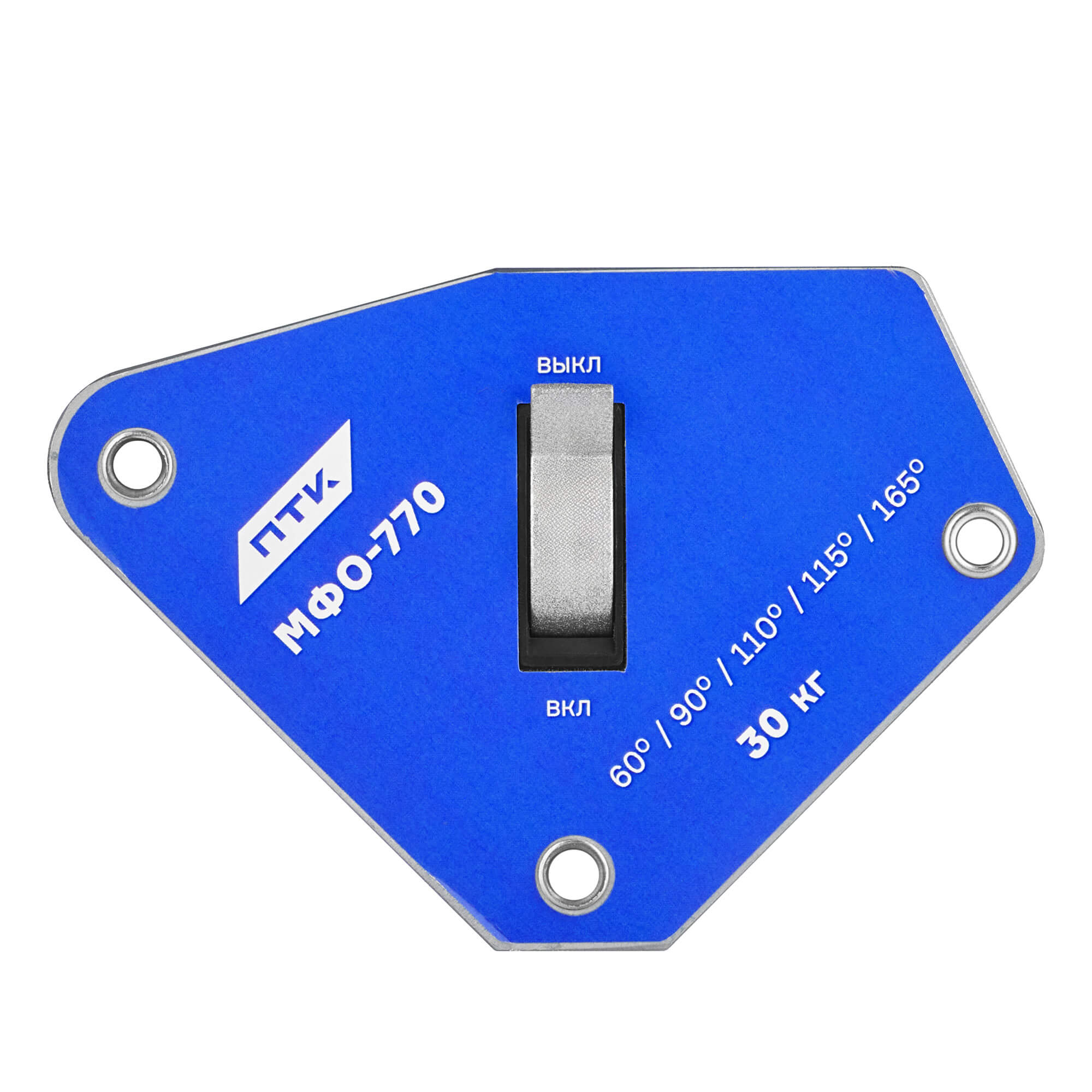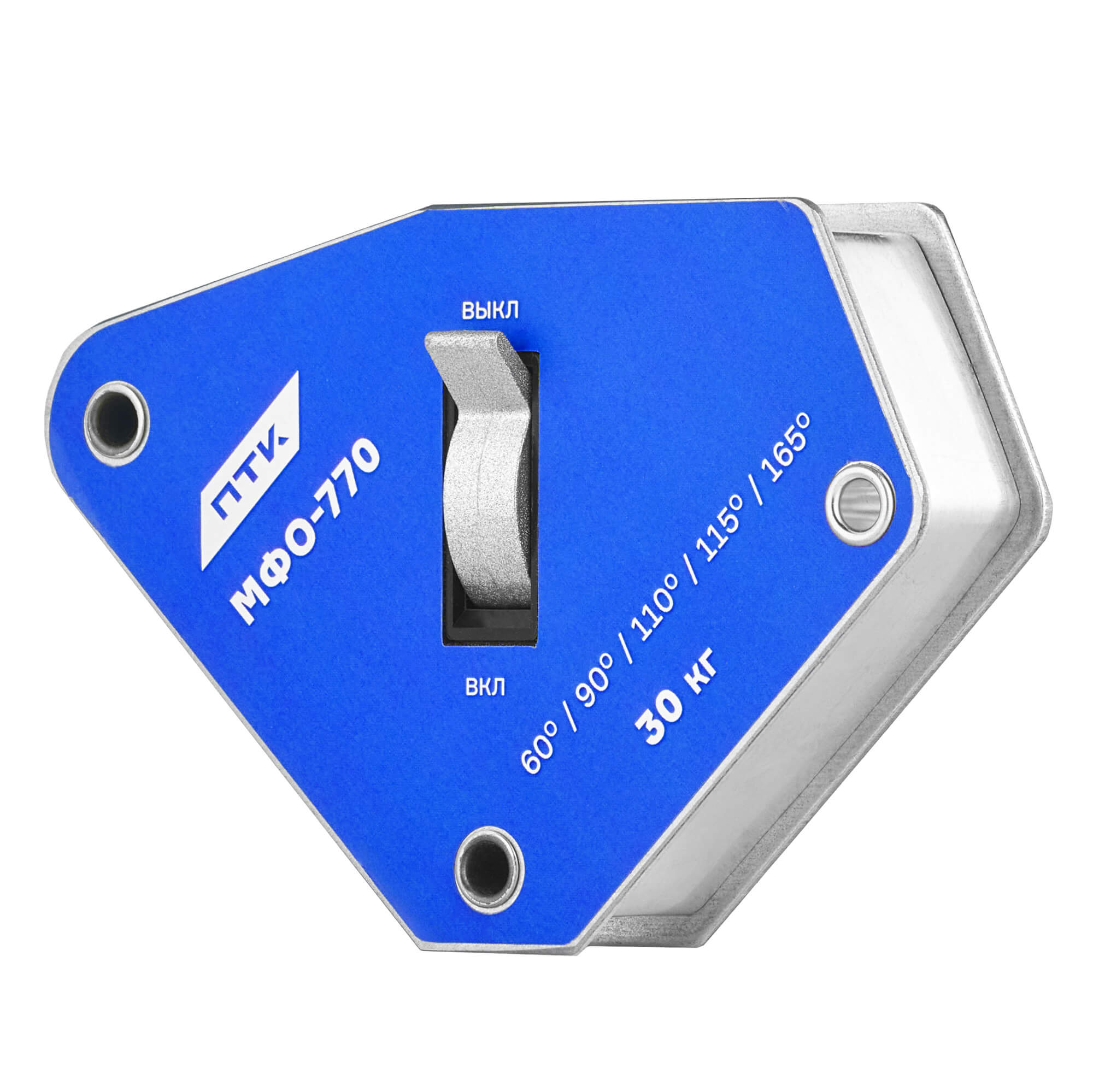 Фиксатор магнитный отключаемый МФО-770 позволяет производить точное выставление углов при сварке, пайке и при монтаже конструкций. В магните присутствует функция отключения. Изготовлен из сплава, который устойчив к высоким температурам.Особенности отключаемого магнитного фиксатора МФО-770:Максимальная масса удерживаемого изделия – 30 кг.Возможные углы удерживания деталей – 60°, 90°, 115° и 165°.Наличие рычага «включения/отключения» магнитного поля. Это позволяет быстро переставлять фиксатор в нужно место для сварки, не рискуя сдвинуть конструкцию или поцарапать поверхность изделия.При выключении магнита стружка и мелкий намагниченный мусор легко осыпаются с рабочей поверхности. Так проще держат МФО в чистоте, что продлевает ресурс фиксатора и улучшает качество прилегания его к изделию.Поставляется в картонной коробке.
